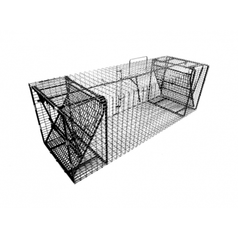 The 12×12 sized cage traps have taken beaver 50 pounds and larger. Placed on land the 12×12 will take large raccoon, armadillos, otters, opossums, woodchucks, skunks, fishers, like size animals and even bobcats.