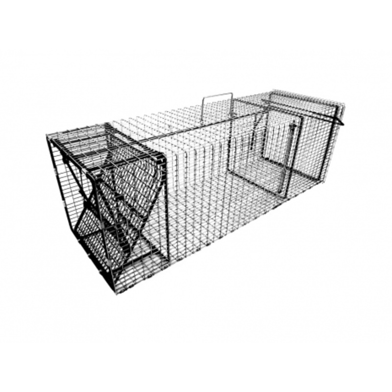 The 12×12 sized cage traps have taken beaver 50 pounds and larger. Placed on land the 12×12 will take large raccoon, armadillos, otters, opossums, woodchucks, skunks, fishers, like size animals and even bobcats.