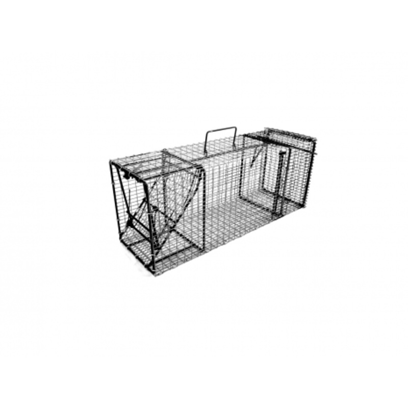Model C911SD-24 is designed for raccoon, woodchuck and similar size animals.It weighs 13 lbs, is constructed of 1/2" x 1" wire mesh throughout the trap and measures 24L x 9W x 11H.This trap has one trap door and is strong, reliable, durable, and requires l