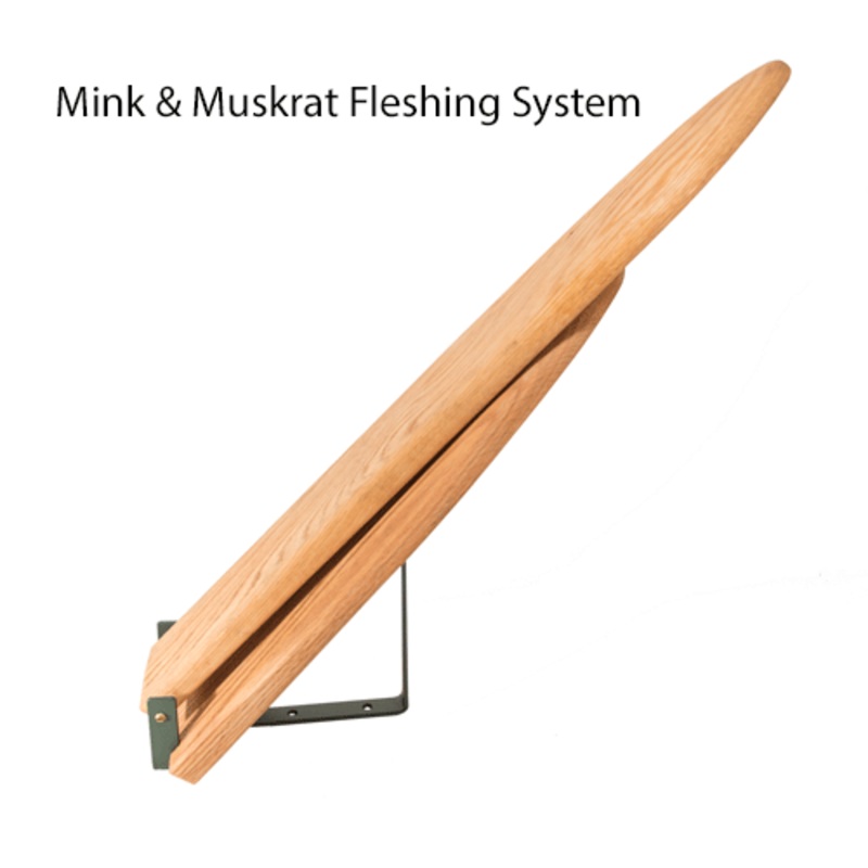 The Mink & Muskrat Fleshing System manufactured by Coon Creek is made of solid oak beams that are hand-sanded and finish coated for years of service. The bracket can be bolted to your table or bench so it can be removed and stored until the next trapping s