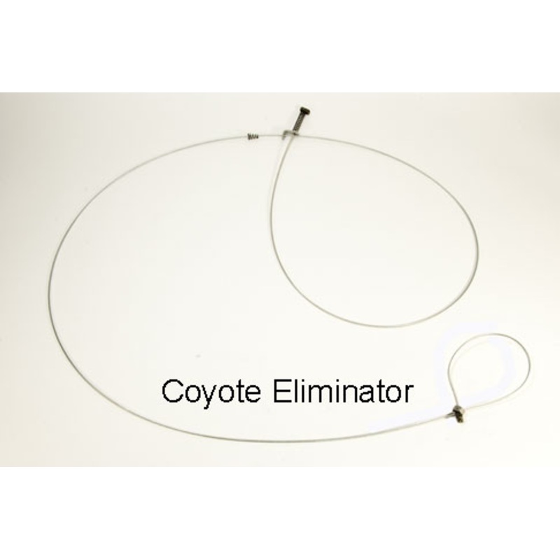 Coyote Eliminator Dispatch Snares are 7 ft. in length and constructed of 5/64" 1 x 19 aircraft cable. They utilize a modified Berkshire lock and has a 25 lb. dispatch spring for maintaining pressure. The Coyote Eliminator has a Universal Support Collar and