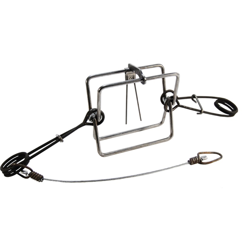 CTM 5″ x 5″ Square Bodygrip Trap, with sturdy 160 sized doublesprings. Can be used for squirrels, opossum, mink, martin, skunk, weasels, and even raccoon.