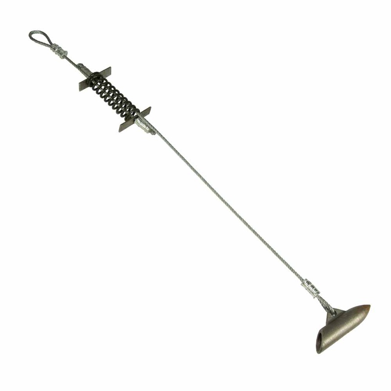 Custom 20″ Cable Assembly for Belisle 6″ or 8″ Foot Snare, 1/8″ cable, with bullet stake, 53 lb shock spring, aluminum stops & toggle