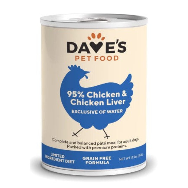 Dave’s 95% Premium Meats Chicken & Chicken Liver Canned Dog Food 12.5 oz
