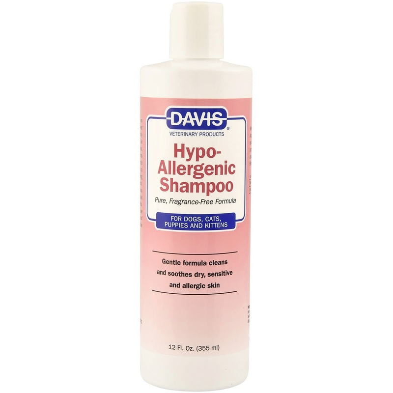 Davis Hypoallergenic Pet ShampooContains no fragrances, dyes, soaps or other allergy producing ingredients. Formulated for pets with persistently sensitive, dry and allergic skin. This extra-mild tear-less shampoo contains no sulfates! Emollient rich, help