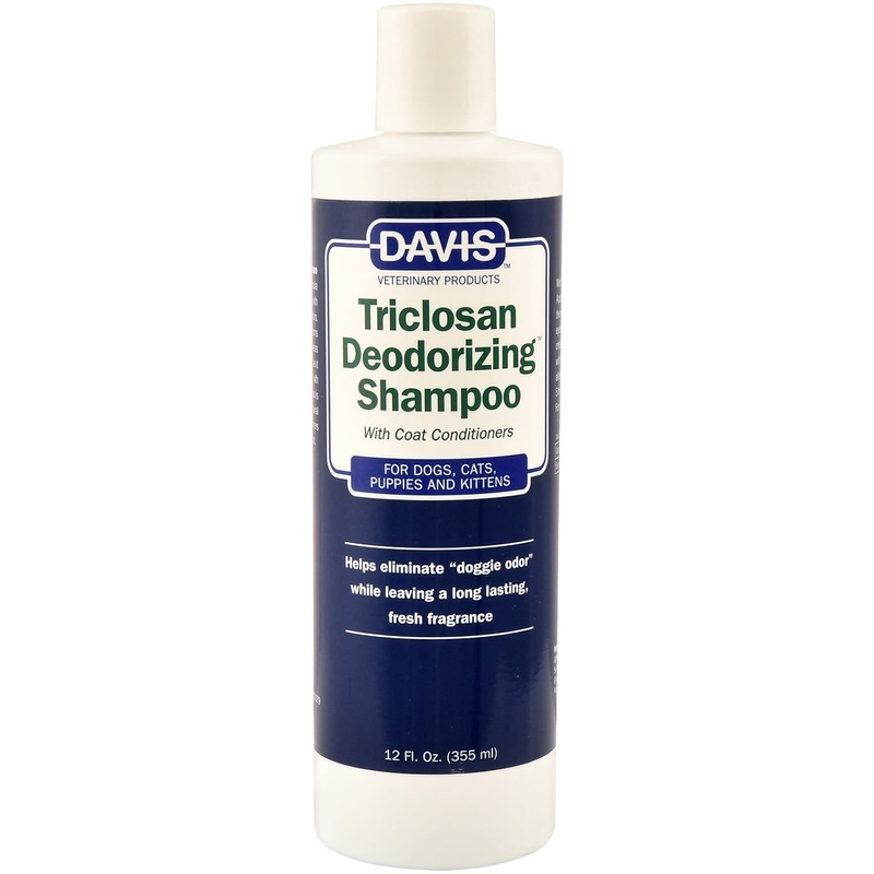 Davis Triclosan Deodorizing Pet ShampooSpecially formulated for dogs, this shampoo effectively eliminates "doggie odors" with the active ingredient Triclosan. Its deep-cleansing, luxurious formula contains natural moisturizers to nourish the skin and coat,