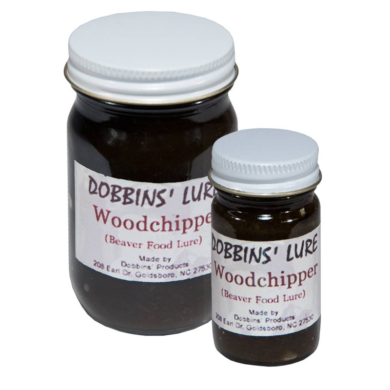 Woodchipper Beaver Lure by Dobbins. This is a food-type beaver lure and is available in 1 oz. or 4 oz. sizes. It is a favorite for the summer ADC jobs when the beaver are extremely finicky. Also, it is a great all-season lure used in food-type sets, i.e., place a few freshly peeled sticks along the waterline.