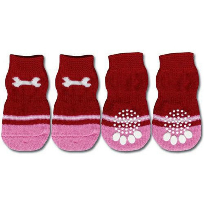 Dog Bone Red Doggy SocksFeatures non-skid pads. Double cinching for secure fit. Keep your dogs paws warm in cold weather. Skid free pads help prevent sliding on slippery surfaces. Can be used for in-between shoe or boot sizes to provide a better fit. Provi