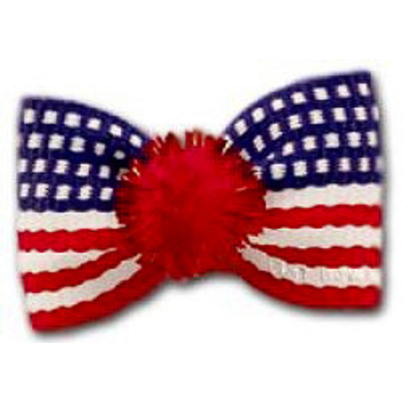 Dog Bow Barrette - Glory DogsPatriotic! RED, WHITE & BLUE. A 4th of July favorite!Stiffened for extended wear. The unique styling was created for pets, stiffened with a special non-toxic stiffener designed to last. Grosgrain, polyester or woven polyester r