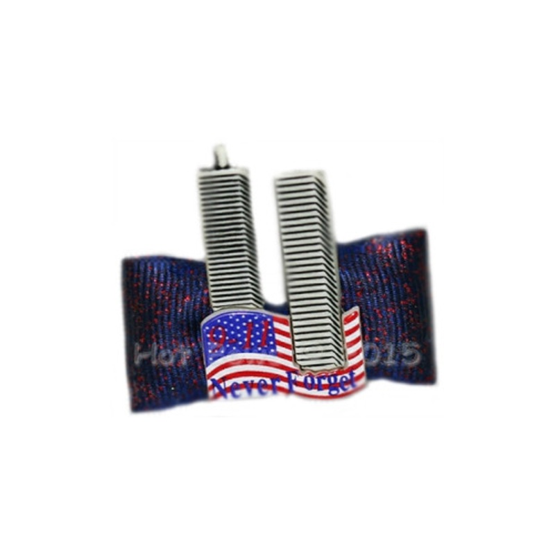 Dog Bow Barrette -Dog Bow Barrette - Never ForgetRemembering the glorious twin towers and those that were lost. A tribute to those that you will Never Forget. Stiffened for extended wear.Approx 1.75"; ribbon 7/8" wide.Hot Bows are original designs created