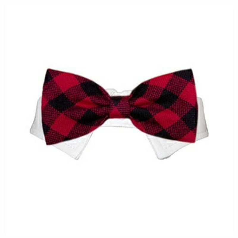 ClarkBow Tie - Dog CollarRd Buffalo Plaid Dog Bow Tie and Collar. This high quality classic dress-up collar with detachable bow tie is perfect for formal affairs, weddings, holiday photos and parties. This tie will fit the Big Guys!! Velcro closure. Tie sn