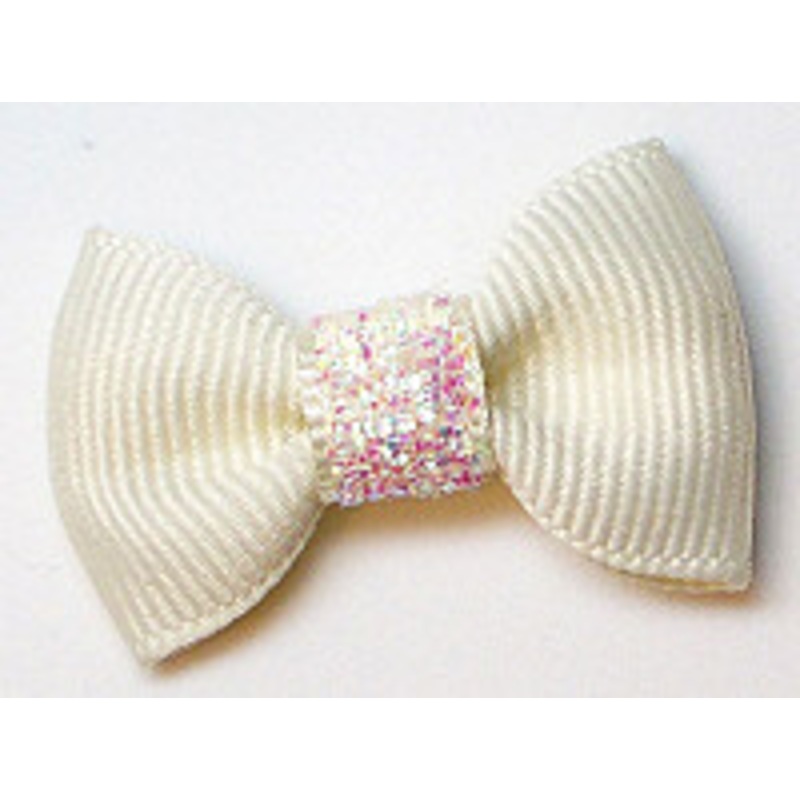 Dog Hair Bow Barrette - PreciousCreamSimple and Elegant! Plain grograin ribbon with a glittery center. Available in several colors, you'll want more than one color! Perfect for weddings or elegant affairs.Measures approximately 1 1/2 inch in diameter, this