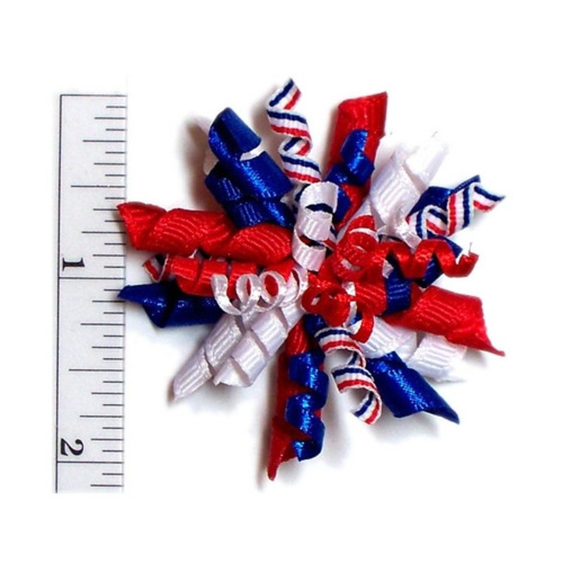 Red, White & Blue Fireworks Whirlie Dog Hair Bow Barrette