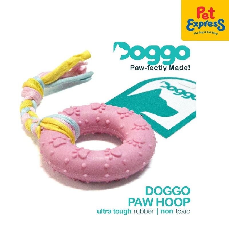Doggo Paw Hoop Dog ToyMade with thick rubber materialComes in color Blue and PinkLength: 3 inches Width: 2.8 inches Height: 1 inchPaw-fectly made!