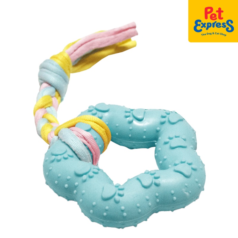 Doggo Paw Star Dog ToyMade with thick rubber materialComes in color Blue and PinkLength: 3 inches Width: 2.8 inches Height: 1 inchPaw-fectly made!