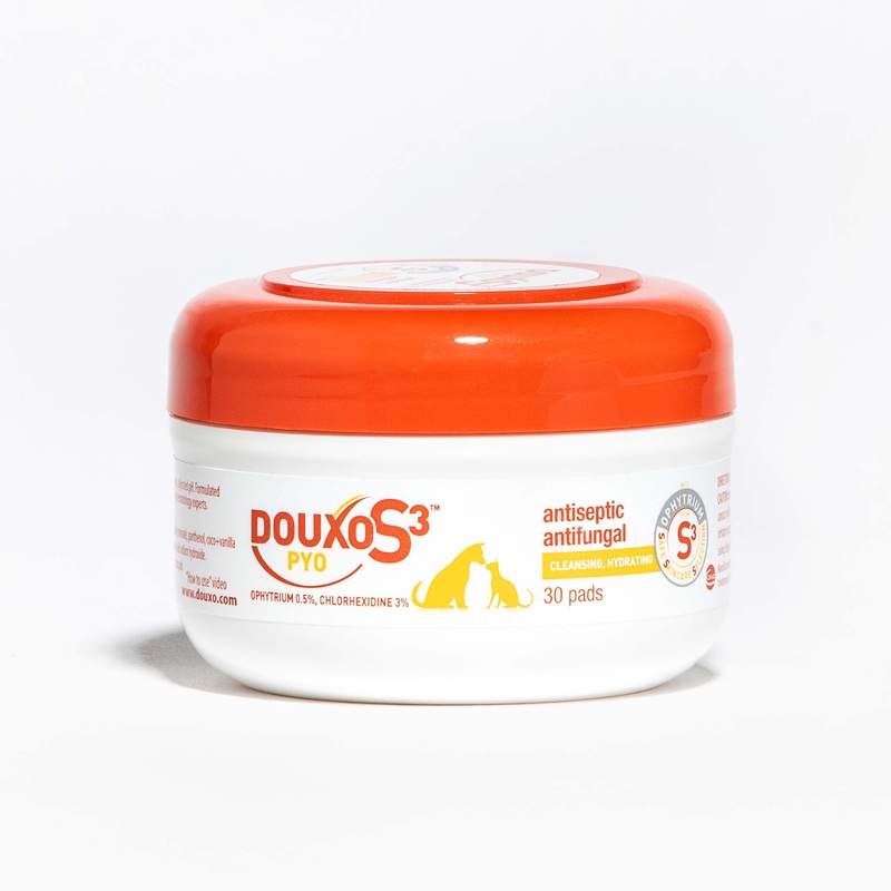 Help keep your four-legged friend feeling fine with Douxo S3 PYO Dog & Cat Pads. These topical wipes are formulated with antibacterial and antifungal ingredients like ophytrium, a natural ingredient that can help soothe, clean and strengthen the skin barri
