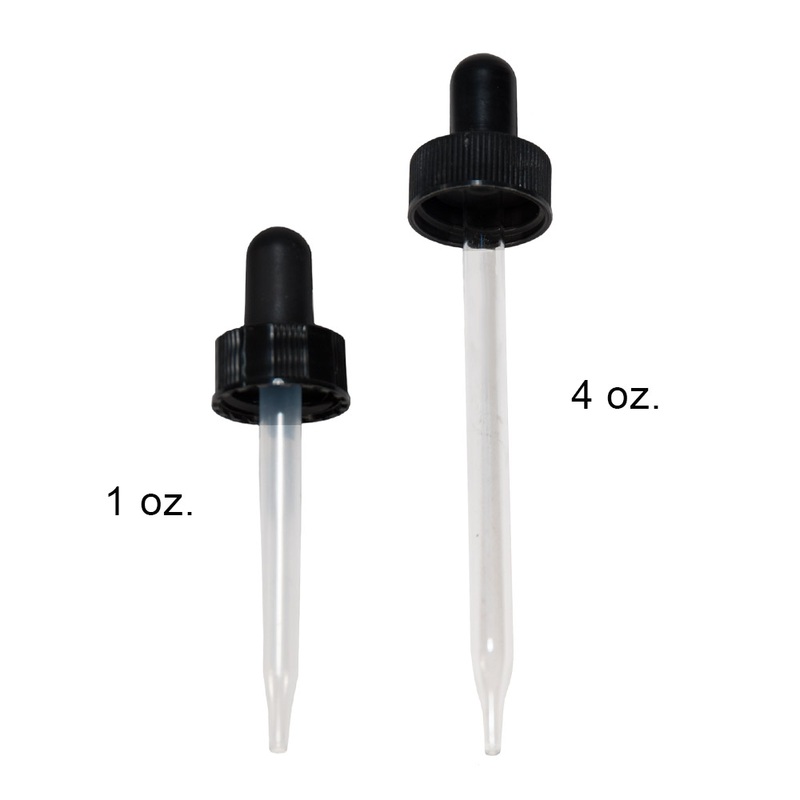 Note: The 1 oz. dropper has a plastic tube. The 4 oz. dropper has a glass tube.