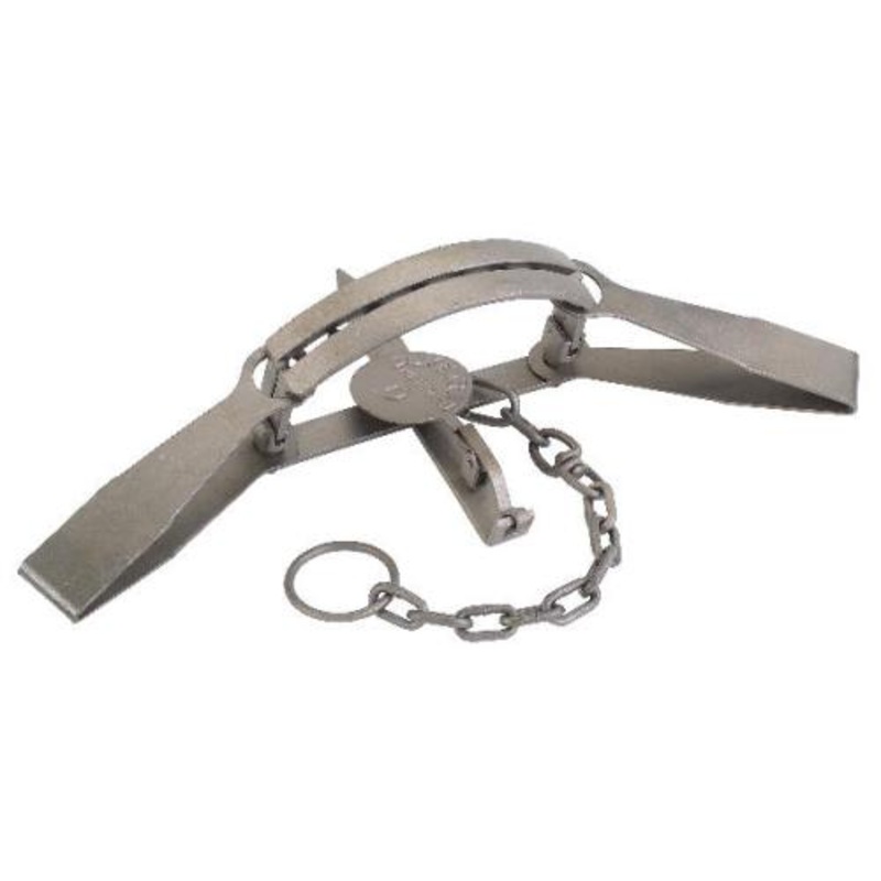 TheDuke #16 Bear Trap, Offset, 16″ jawspread– Nothing says Man Cave like a bear trap. This trap has a 16″ offset jaw spread, is 43″ long when extended and says Duke #16 Bear in raised letters on the pan. A real collector’s item!