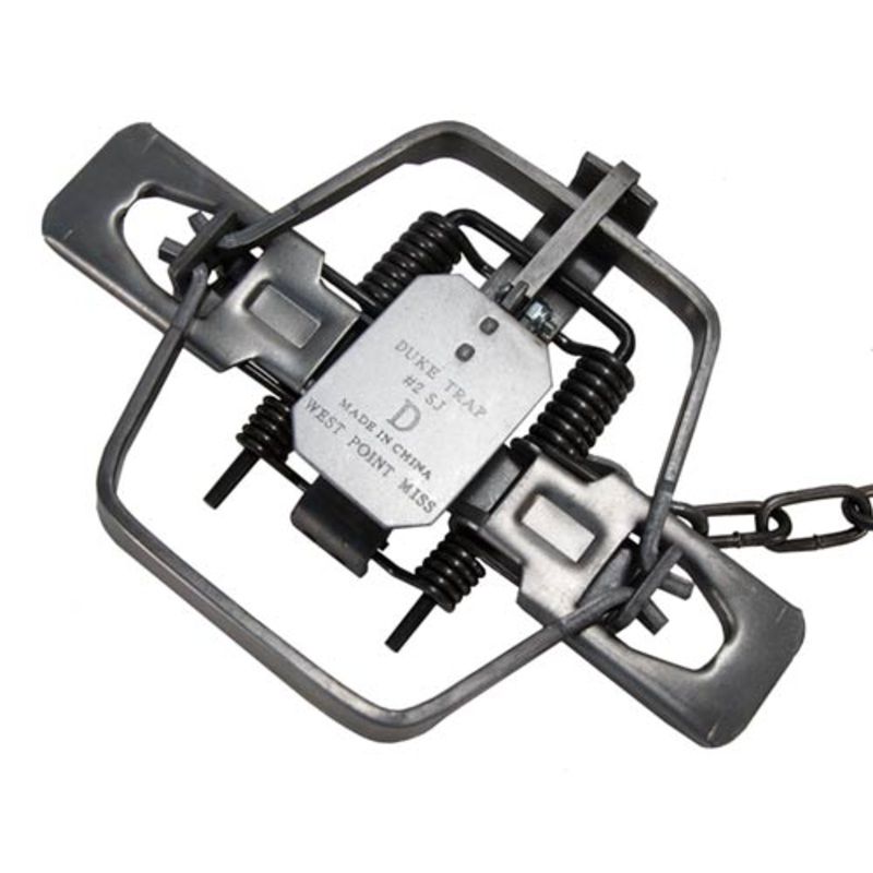 The #2 Duke 4-Coiled Coil Spring Trap has a 5 7/8" jaw spread. This trap features square jaws, high lock up levers, base plate and heavy duty machine link chain. Great for taking coyote, bobcat and lynx.SIX TRAPSBrand:Duke TrapsWeight:9.3 lbs. (4.21 kg.)Ta