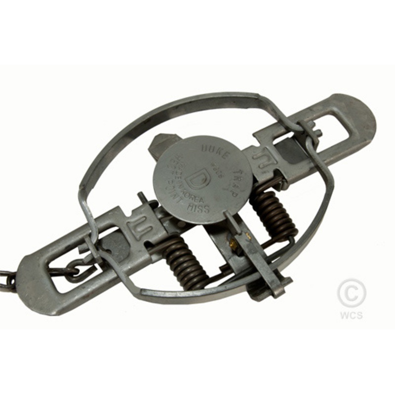 Duke #3 Double Coil, Standard Jaw Trap has a 6 inch jawspread and is great for capturingBeaver, Bobcat, Coyote, and Lynx. These traps have a brass nut and bolt for easy adjustment of pan tension and they come equipped with 5" of 2-0 double loop chain with
