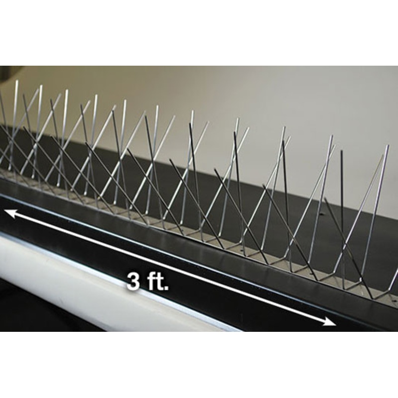 Dura-Spike Xtra-Wide is 8" Wide. It is made for ledges 8" to 10" wide.Dura-Spike Bird Spikes are 100% stainless steel and are available in three-foot lengths for fast application. The base can be cut easily with snips or shears. It curves gently or takes h