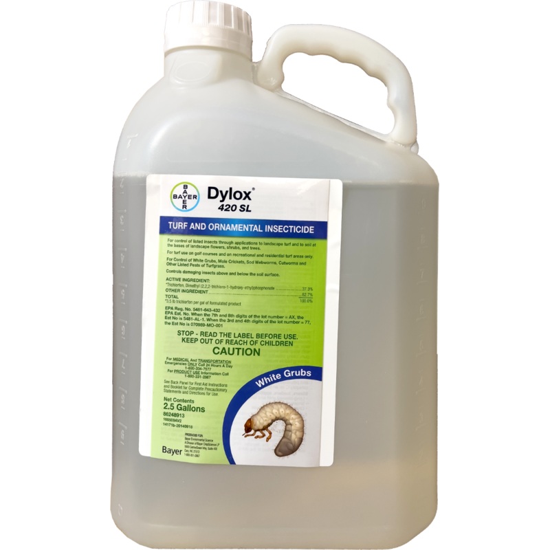 Dylox 420 SL Insecticide provides fast acting grub control. Insecticide treats surface feeding insects on lawns, landscape and recreational turf, such as golf courses. After irrigation or rainfall, grub control is established in as little as 24 hours and p