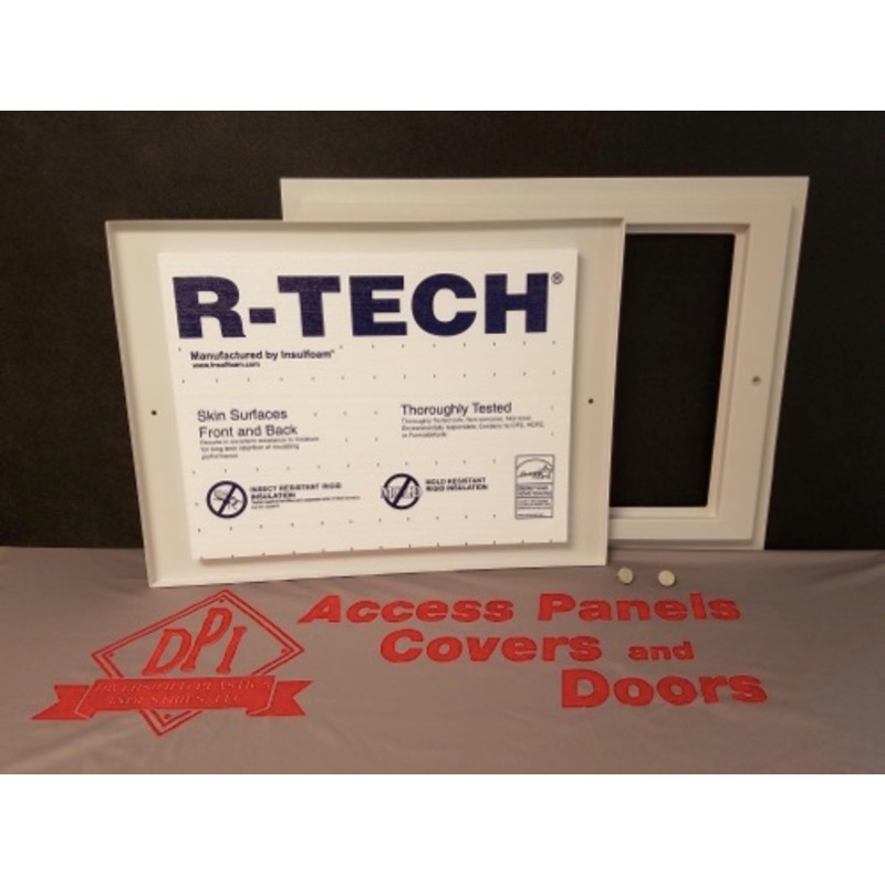 3/4" EPS insulation on door and frameInsect & mold/mildew resistantApprox. R value 6Door 18 x 24Frame 26 x 34Fits up to 24 x 32 openingAvailable in white (paintable) or blackInstall InstructionsModels SF1 crawl space doors can be surface mounted and trimme