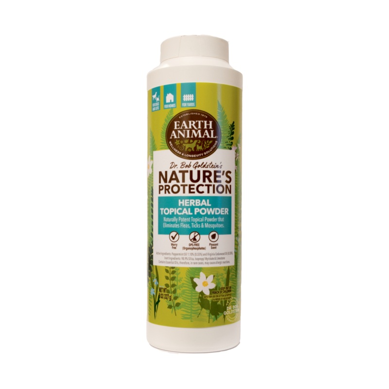 Formulated by Dr. Bob Goldstein, our Nature’s Protection Flea & Tick Herbal Topical Powder is infused with a natural blend of aromatic herbs and essential oils combined with the potent effects of limestone. Our powder is an effective and powerful alternative to synthetic chemicals, synthetic pesticides, and synthetic insecticides. And, also provides fast-acting natural relief to flea, tick, and mosquito bites and infestations.