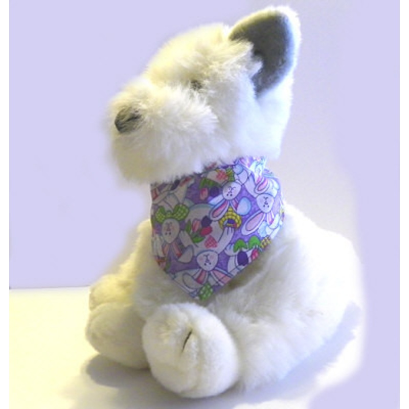 Easter Dog Bandana - Lavender BunniesCelebrate Easter with a simple bandana, a great inexpensive way to show your holiday spirit. Add to a tank or just wear it alone. This is an adorable colorful lavender scarf with white bunnies. Simply tie around the nec
