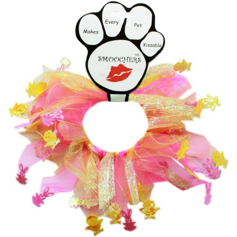 Easter Bunnies& ChicksDog SmoocherStretchy elastic and festive Easter Bunnies & Chicks, these collars make dressing up a pet simple and quick. Smoochers Pet Scrunchies just slip them over your pet's neck and voila!Sizing:SM- fits 8"-11" neckMD- fits 12"-15