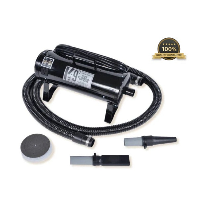 Whether you’re a professional groomer, or a homeowner who wants a fast and reliable way to blow out and dry your pups, the K-9 I Dog Dryer is a great way to blow water and shedding hair away! Included Accessories: Includes a filter, 10′ hose, flat blower tip, and round blower tip in the box.