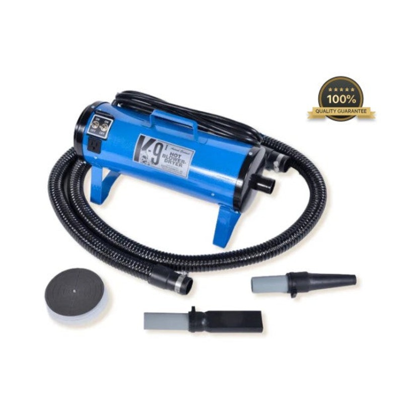 The K-9 I Dog Dryer gives a great dry and finish, and is perfect for both home and professional users.The unique motor design of the K-9 I Dog Dryer make it a homeowner's favorite, as it works in a standard 15 amp outlet out of the box.Blast away water and