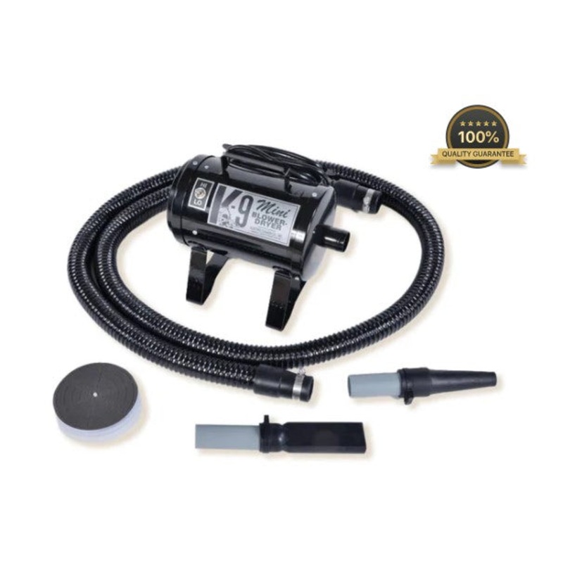 For K-9 Dryer drying power and precision on-the-go, the Mini K-9 Dog Dryer can’t be beat. The compact and powerful Mini K-9 is easy to store and transport, making this the perfect blower/dryer for mobile groomers and dog shows. The Mini K-9 Dog Dryer is the perfect dog dryer for the groomer on-the-go. Whether you’re working a dog show or just switching locations regularly, you can easily bring the power and precision of the K-9 Dryer line wherever work takes you! Two speeds and two heat settings give you the control to get the job done. You’ll love how easy it is to transport, set up, and store the Mini K-9, and never need to lug around a bulky unit again. Units are available with an optional muffler to further reduce the sound. Electric Cleaner Company also recommends the optional K-9 Sleeve to reduce the hand/arm heat on the groomer, and protect the hose from incidental damages, scratches, and bits from dogs. If you’re a groomer who frequently works dog shows or travels on-location for your clients, the Mini K-9 is the perfect dog dryer for you. Included Accessories: Includes a filter, 10′ hose and both flat and round blower tips in the box. Two-Speed / Two-Temperature Control: Effortlessly switch between heat and power settings for a precision dry on-the-go.Shipping Info: This item is not eligible for free or discounted shipping. Please allow additional shipping time as it is shipped directly from the manufacturer. |