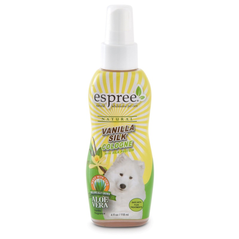 Espree Vanilla Silk Cologne is formulated to naturally neutralize odors, condition coats and leave a fragrance that lasts and lasts. Neutralizes odor with a vanilla fragrance. Spray and massage into wet or dry coat. Allow to dry naturally.