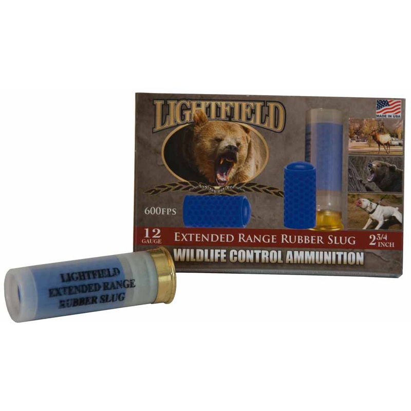 The same patented design as our mid-range slug, colored blue for user identification and at 650 fps. This Extended Range Rubber Slug load is intended to deposit higher levels of kinetic energy at longer distance than any other load available. This load permits aversive conditioning at distances well beyond the norm, and provides enough K.E. to move large animals at greater distance. The Extended Range Rubber Slug is a high velocity, low recoil load intended for close range use. The rubber projectile can cause serious injury or death, but greatly reduces the potential to over penetrate or injure others in the home. Use only in firearms chambered for this gauge/caliber and that are in good working condition.The Extended Range Rubber Slug should only be used in Cylinder or Improved Cylinder-choked rifle barrels.