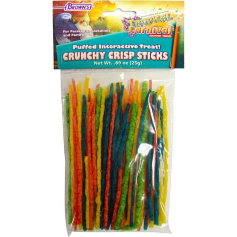 Brown's Tropical Carnival Crunchy Crisp Sticks are crispy, crunchy, colorful & puffed interactive treats! These festive and fun to eat sticks are perfect for pet birds of all sizes.
