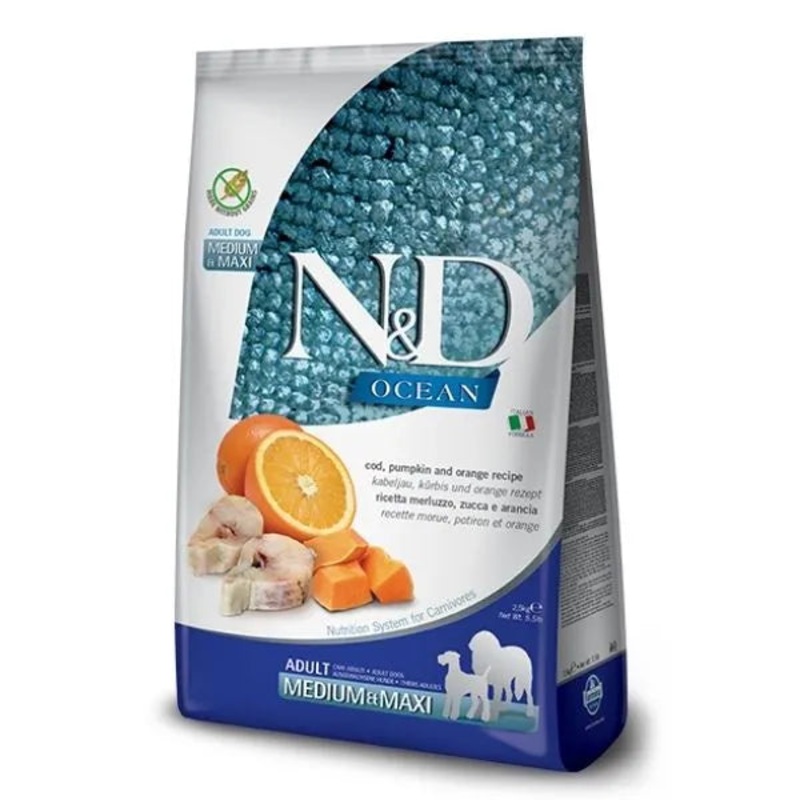 Farmina N&D Ocean Canine Adult Medium & Maxi Dog Food Formula – Cod, Pumpkin & Orange