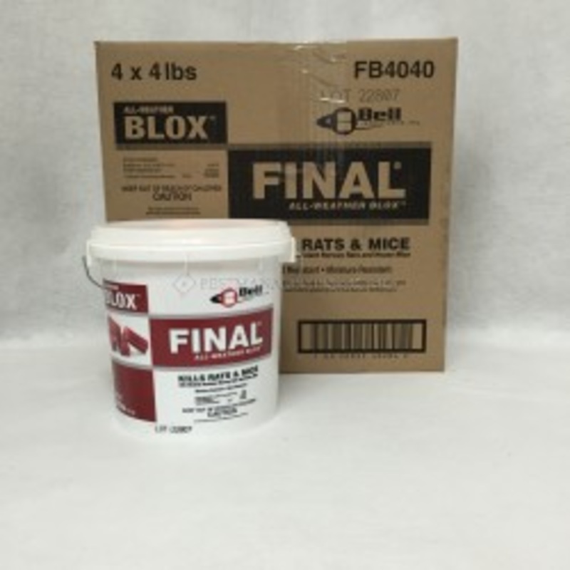 FINAL All-Weather BLOX contains the powerful active ingredient, Brodifacoum, the strongest, single-feeding anticoagulant on the market today. FINAL is effective in controlling both rats and mice but works especially well to clean out persistent mouse infes