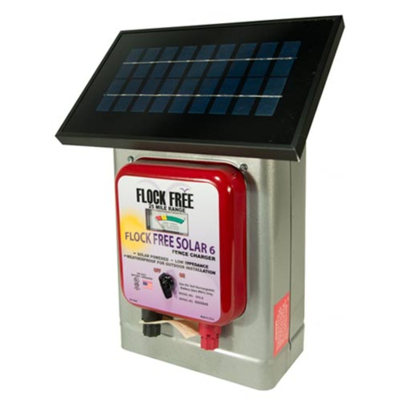 The Flock Free Solar Chargeris used to provide the electrical charge to Flock Free Shock Tape. It can also be used with the Beam Clip and Tree Track Systems.