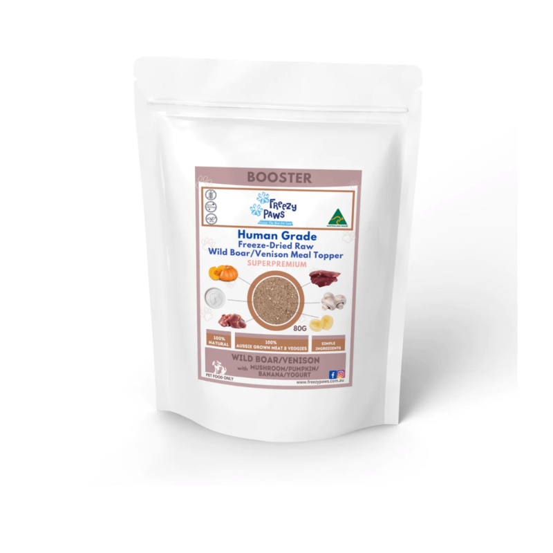 FREEZY PAWS Freeze-Dried Raw Wild Boar & Venison with Mushroom, Pumpkin, Banana and Yogurt Meal Topper Mix 80g