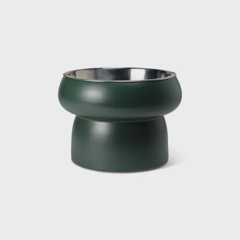 A pet bowl designed to complement modern home dcor! This medium dog bowl features matte speckled dark green glaze, elevated design to make eating more comfortable and prevent neck strain, and a stainless steel bowl insert