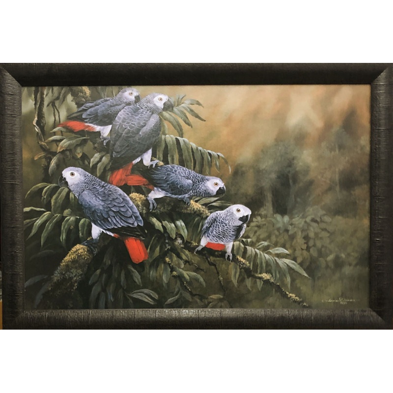 Be the first to review “Gamini Ratnavira Painting the Town Red Parrot Art Print-Framed”