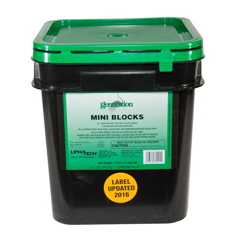 Generation Mini Blockshave the taste rodents can't resist. They are the best mini block available. Mice and rats like the food grade grains and flavorings and whole seeds. Formulated with difethialone, a single feed anticoagulant. Generation mini blocks ar