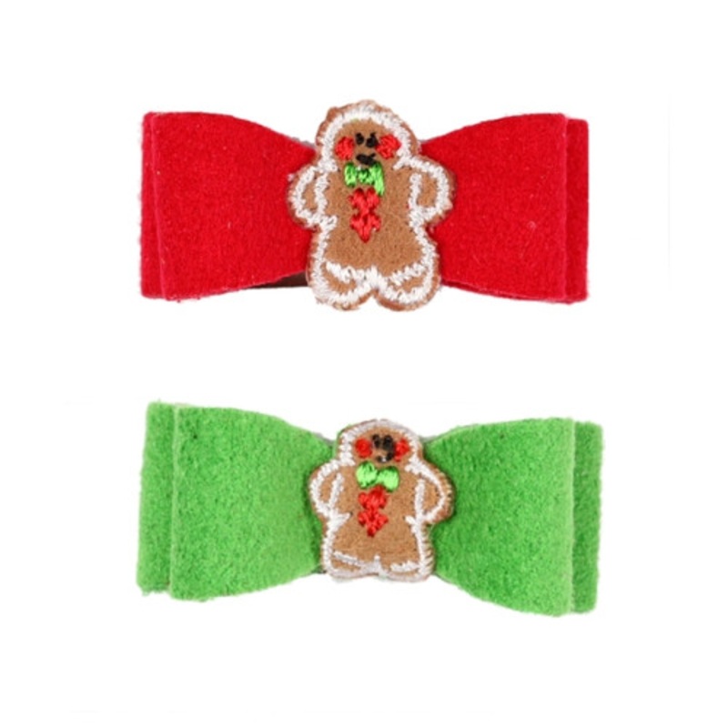 Susan Lanci Designs Gingerbread ManDog Hair Bow Barrettes- Red or Green