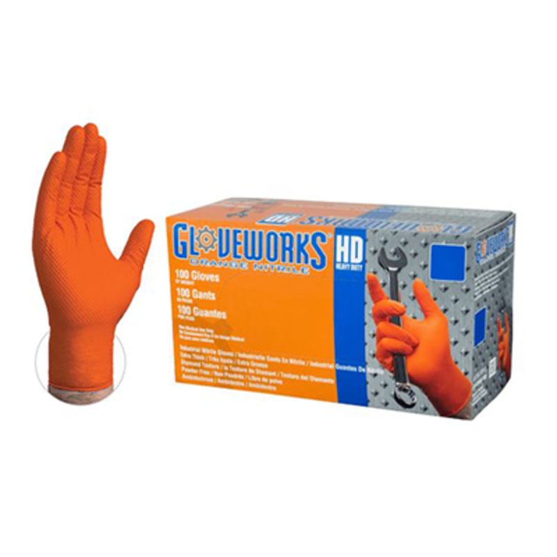 Gloveworks HD Heavy Duty Orange Nitrile Gloves