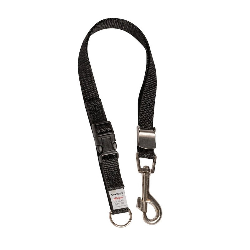 This dog grooming loop is 5/8 thick and is used to groom all dogs large and small. Designed to work specifically with the Groomers Helper Professional and Starter Sets, this grooming loop is made of high quality materials. Comes with a tight locking Stainless Steel Clasp and a D-Ring for connecting the loop to the Groomers Helper Tether.20 Total Length. Groomers Helper has the only patented loop in the Industry. With a heavy-duty emergency release buckle and webbing that wont unravel once cut, it is by far the strongest and most technologically advanced Safety Loop in the world! Available in a variety of colors; every good groomer should have an extra one on hand.