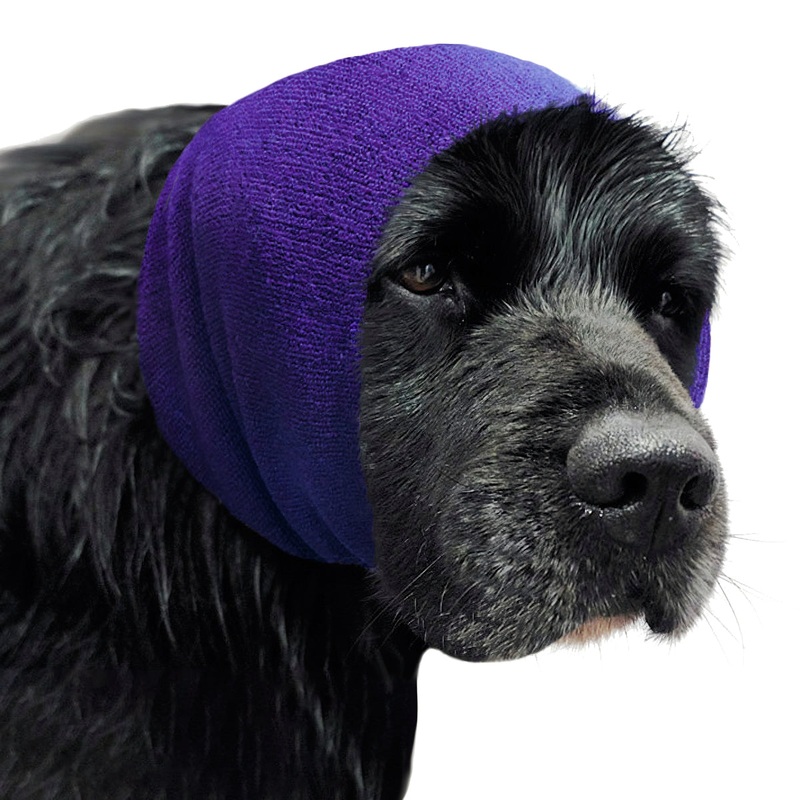 Happy Hoodie is a soft, expandable, fabric calming band. Its gentle compression reduces noise and has a swaddling effect that relieves anxiety and calms dogs and cats during stressful situations in the home, grooming salon, and Vets. It is best known for keeping dogs calm during the force drying process. Common reasons for Grooming Salon use: Force drying, Bathing, Clipper work, Trimming nails, Brushing/dematting, Touchy on feet, Nervous about being there, Aggressiveness. Grooming benefits include: *Swaddling effect and noise reduction calms upset, disagreeable pets *Contributes to the safety of both pet and groomer or pet owner *Saves valuable time in the grooming salon *Speeds up drying time by wicking water from the ears and face *Helps to protect pets hearing *Comes in 4 sizes to accommodate all dog and cat sizes. HOME USES- CALMS PETS DURING STRESSFUL EVENTS, such as: Thunder, Fireworks, Gunfire, Vacuuming, Noisy environment, Toenail trimming, Brushing, Bathing, Blow drying, Paw handling, Car rides, Visitors, Vet exams, Keeps head warm, Aerates ears, Prevents and aids in healing Hematomas. Happy Hoodie has gentle compression that creates a swaddling effect and reduces noise to naturally calm upset pets. Keeps pets calm during Thunderstorms, Fireworks, Grooming (most importantly during Force Drying), Vet exams, Car Rides, and any other potentially stressful/noisy situation. Can prevent/heal hematomas