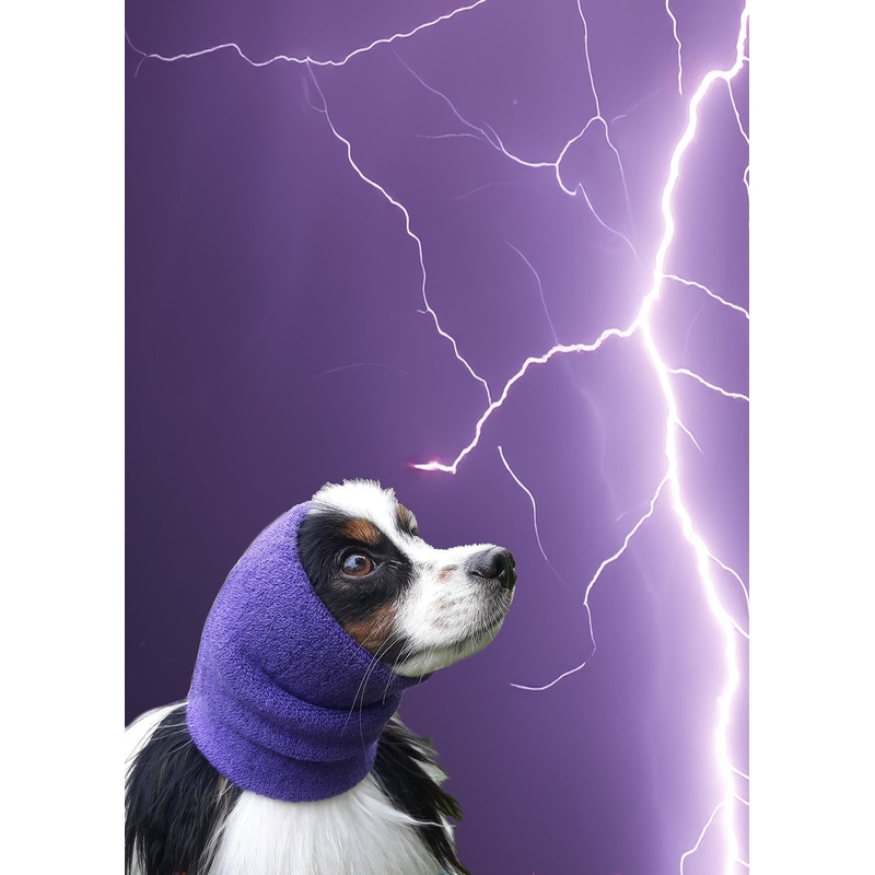 Happy Hoodie is a soft, expandable, fabric calming band. Its gentle compression reduces noise and has a swaddling effect that relieves anxiety and calms dogs and cats during stressful situations in the home, grooming salon, and Vets. It is best known for keeping dogs calm during the force drying process. Common reasons for Grooming Salon use: Force drying, Bathing, Clipper work, Trimming nails, Brushing/dematting, Touchy on feet, Nervous about being there, Aggressiveness. Grooming benefits include: *Swaddling effect and noise reduction calms upset, disagreeable pets *Contributes to the safety of both pet and groomer or pet owner *Saves valuable time in the grooming salon *Speeds up drying time by wicking water from the ears and face *Helps to protect pets hearing *Comes in 4 sizes to accommodate all dog and cat sizes. HOME USES- CALMS PETS DURING STRESSFUL EVENTS, such as: Thunder, Fireworks, Gunfire, Vacuuming, Noisy environment, Toenail trimming, Brushing, Bathing, Blow drying, Paw handling, Car rides, Visitors, Vet exams, Keeps head warm, Aerates ears, Prevents and aids in healing Hematomas. Happy Hoodie has gentle compression that creates a swaddling effect and reduces noise to naturally calm upset pets. Keeps pets calm during Thunderstorms, Fireworks, Grooming (most importantly during Force Drying), Vet exams, Car Rides, and any other potentially stressful/noisy situation. Can prevent/heal hematomas
