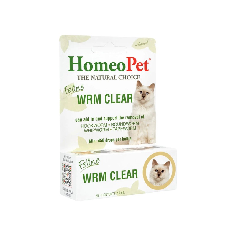 HomeoPet Feline Worm Clear 15mlA natural medicine that may aid in and help support the removal of tapeworms, whipworms, roundworms, and hookworms in cats of all ages, from kittens to seniors. Veterinarian-formulated to help support the bodys natural defens