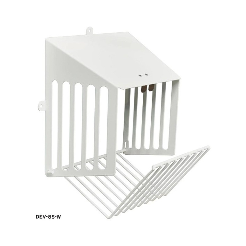 Both dryer vent cover models are forged from steel wirh a white powder coat paint finish to help protect against rust. The front panel with its vertical bars is held in place by a zinc-coated steel clip, and the panel opens on a hinge system to allow for routine dryer vent maintenance. The covers come with three pre-drilled mounting holes that accommodate screws for quick, easy installation. These code-compliant dryer vent covers feature vertical bars that create a barrier against birds and wildlife, helping to prevent lint buildup and dryer fires. Available in two sizes, the 8″ model covers 6″ dryer vents and the6″ dryer vent modelcovers 4″ dryer vents.
